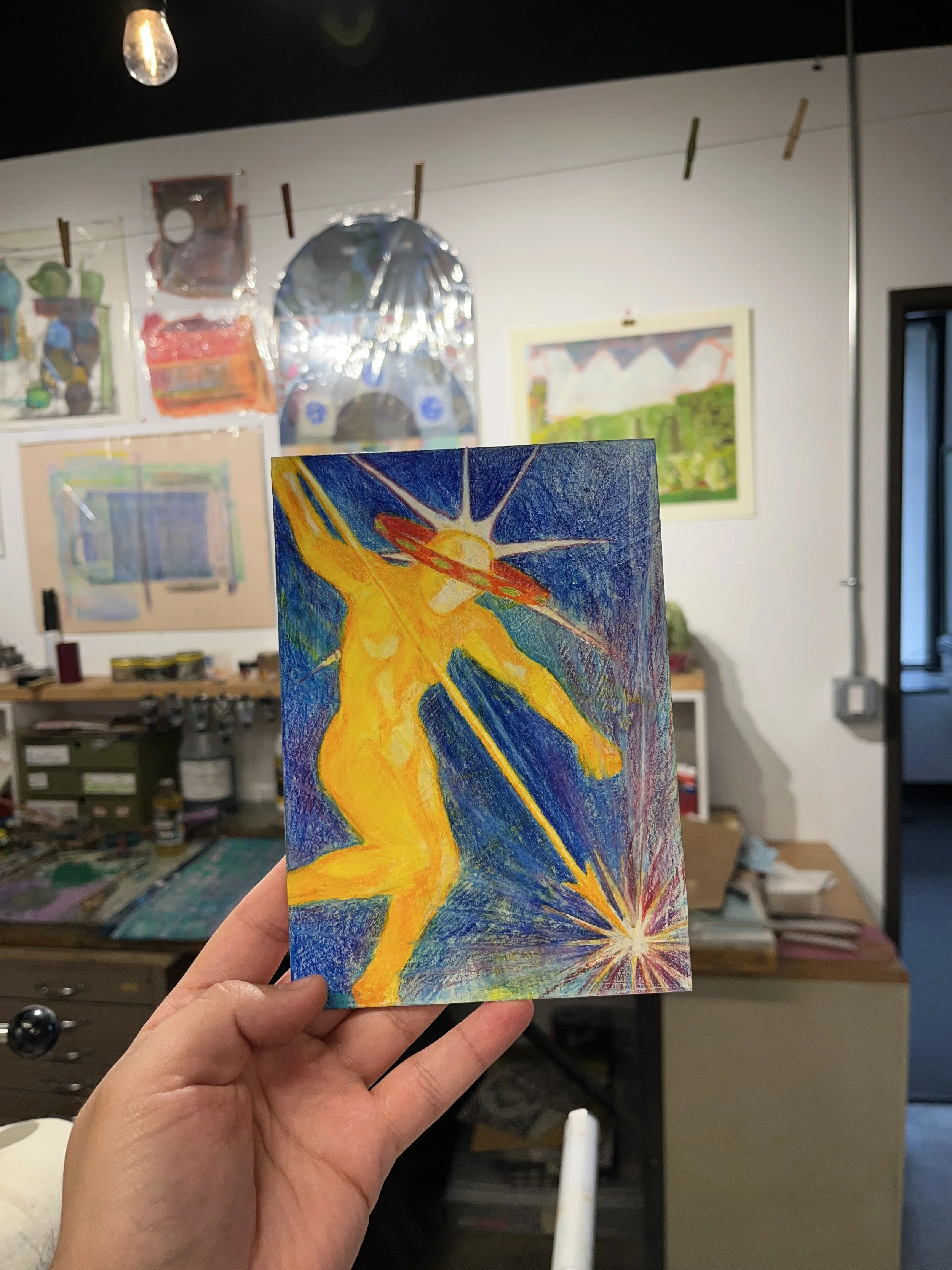 2025. India Ink, Prismacolor Pencil on Pastel Ground Board. 5 x 7 in